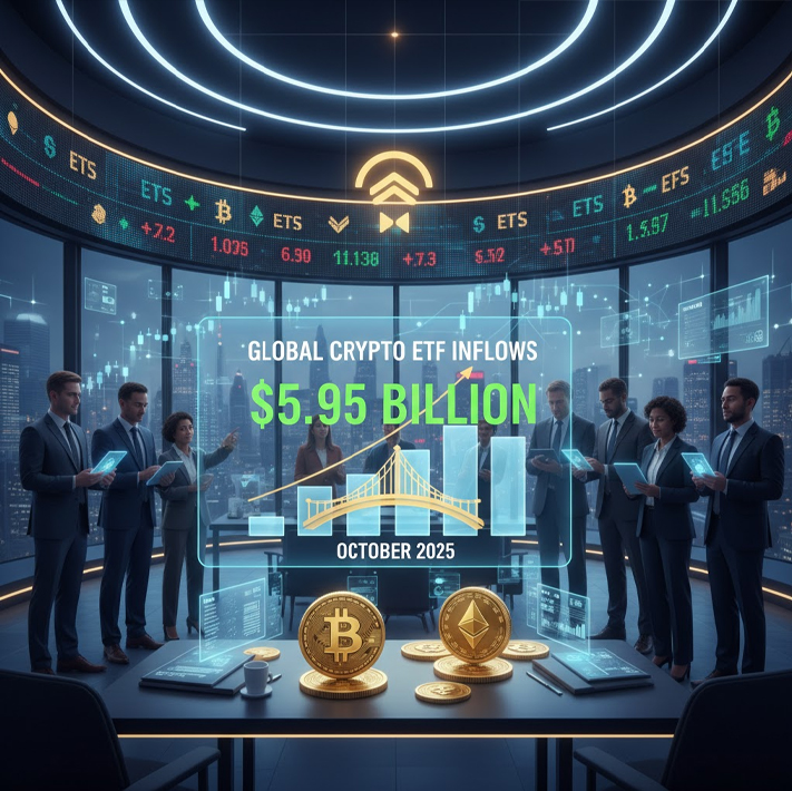Premium Biz Post  – The cryptocurrency market has witnessed an extraordinary development in early October 2025. Despite global market turbulence and regulatory uncertainty, investors flock to crypto ETFs, record inflows of $5.95 billion were reported across international markets in just one week. This unprecedented surge highlights a significant shift in investor sentiment, as both retail and institutional participants increasingly view exchange-traded funds (ETFs) as a safer gateway into the volatile world of digital assets.